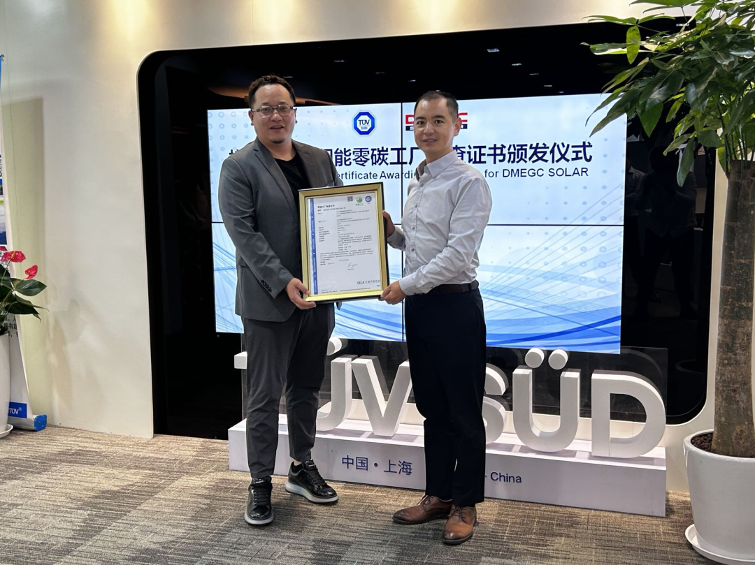 10月16日,横店东磁太阳能泗洪工厂获得国际权威认证机构TüV南德颁发零碳工厂认证,这是TüV南德在光伏行业认证的全球首家零碳工厂,也是横店东磁太阳能自9月份达成组件生产100%绿电之后取得的又一节能减排重大成果。