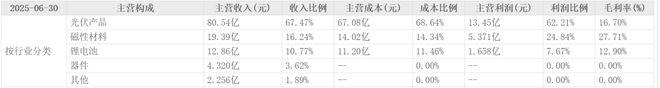 光伏方向:海外双反调查可能让光伏产品出货有所下降。但部分地区的组件价一直高于国内,企业仍有利可图。2025年上半年,企业光伏产品的毛利率稳定在16.7%,主营利润高达13.45亿。行业大部分厂商一片亏损,横店东磁的该细分板块有这个业绩输出,已算不错。
