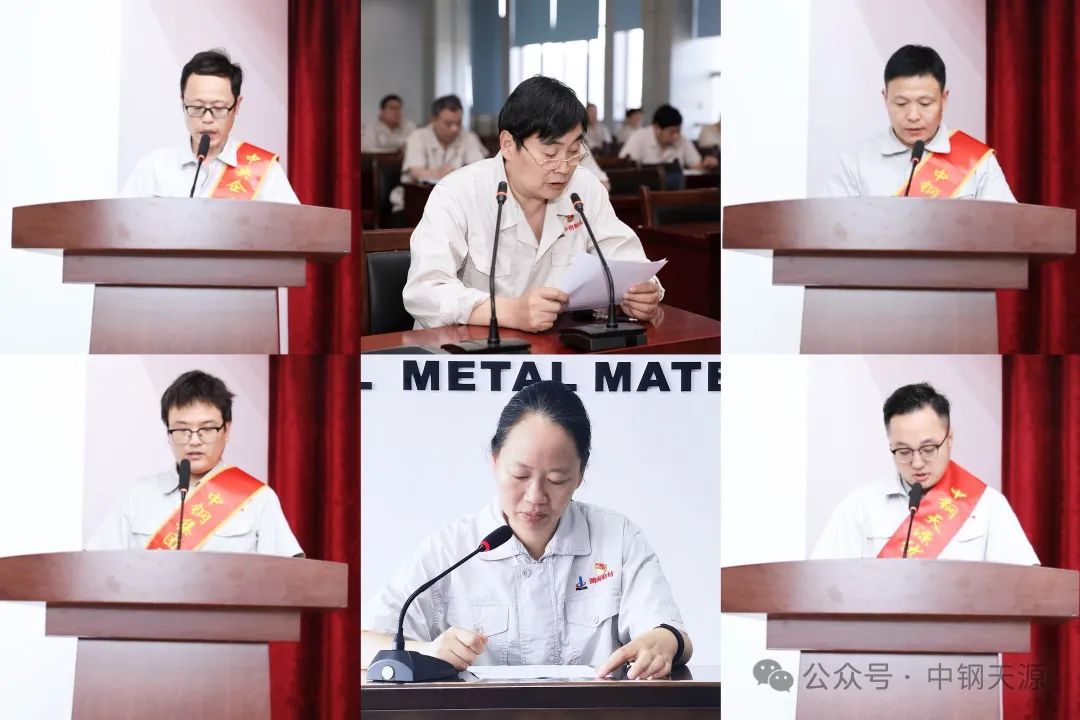 大会在庄严的国歌声中拉开序幕,会上,党委书记、董事长毛海波通报了获得上级单位及政府党内荣誉表彰人员名单,宣读了中钢天源党委关于表彰2023年度“两优一先”的决定,中钢制品院党委副书记、总经理洪涛、副总经理李中山分别宣读中钢制品院党委表彰决定。南京研究院党支部等8个基层党组织被授予“中钢天源先进基层党组织”称号,侯迎起等21名同志被授予“中钢天源优秀共产党员”称号,任立文等9名同志获评“中钢天源优秀党务工作者”荣誉,并现场颁发了奖牌和证书。6名先进集体和个人代表分别作交流发言,分享工作经验,交流心得体会,表示将珍惜荣誉,再接再厉,担当作为,奋力为中钢天源建设世界一流新材料企业作出新的更大贡献。