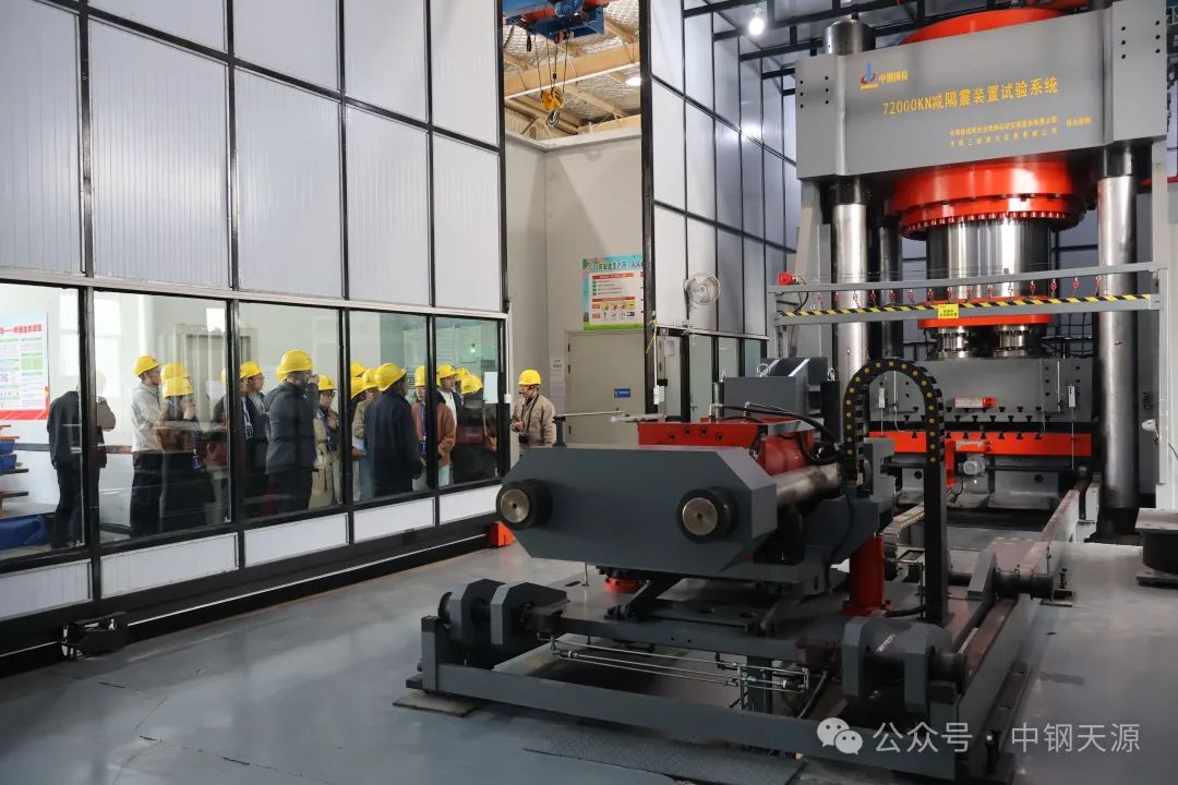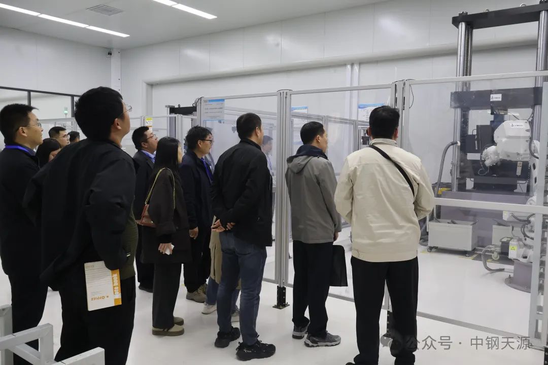在现场观摩环节,与会人员深入中钢制品院质检中心各检测部门,实地参观全自动夹片洛氏硬度检测系统、金属材料全自动拉伸性能检测系统、水泥胶砂混凝土成型养护及抗压强度全自动检测系统和高分子油漆涂料数智化检测系统等多项由中钢制品院自主研发的数智化检测系统,对标准化检测流程、数智化检测系统及技术成果转化能力给予高度评价。