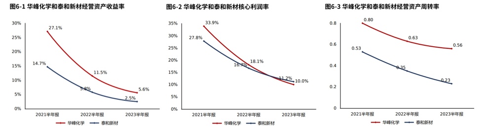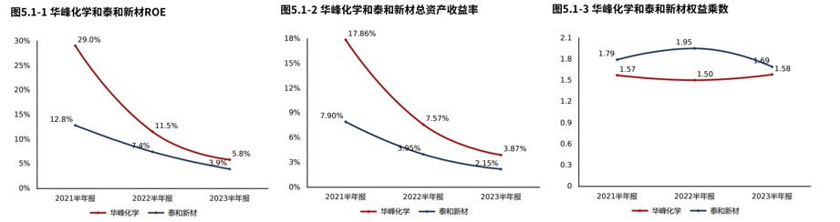 2023年06月30日华峰化学金融负债率20.51%,较2022年06月30日提高10.08个百分点,金融负债水平提高。泰和新材金融负债率17.44%,华峰化学金融负债水平高于泰和新材。华峰化学金融负债水平较高,但主要为非必要融资,其产生的财务费用将对公司效益产生不必要的冲击。