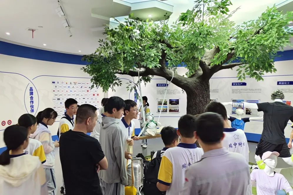 活动伊始,40余名学生及家长齐聚华峰一楼阶梯教室,在公司工作人员的带领下,瑞中附初的学生开启华峰集团研学之旅,先后参观形象展厅、华峰党建长廊和华峰化学生产车间。参观过程中,学生一行对华峰党建工作、氨纶丝的生产工艺、车间生产线以及安全设施表现出浓厚的兴趣,纷纷进行询问了解。随后,学子们观摩消防应急演练,学习并体验了在紧急情况下的自救互救技能。在座谈交流中,首席安全专家朱少正向学生开展安全知识讲座,带领瑞中附初学子们进一步了解生活中的危险源,增强了他们对安全重要性的认识。
