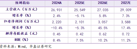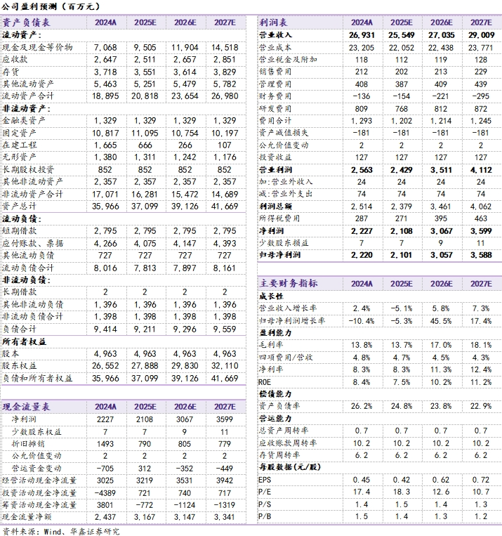 由于行业景气承压,我们略微下调公司盈利预测,预测公司2025-2027年归母净利润分别为21.01、30.57、35.88亿元,当前股价对应PE分别为18.3、12.6、10.7倍,但考虑到公司加快推进聚氨酯产业一体化发展,远期仍有望迎来利润增长,维持“买入”投资评级。