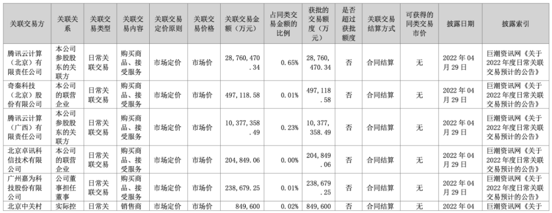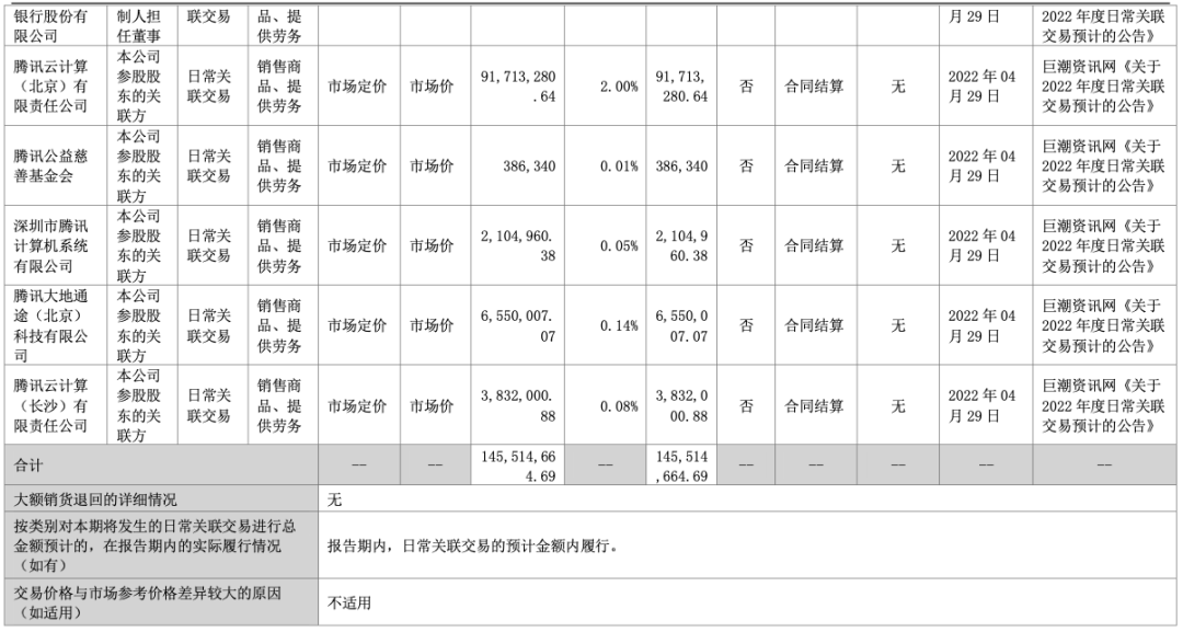 东华软件向腾讯云销售金额 1 亿;东华软件向腾讯云采购金额 3914 万。