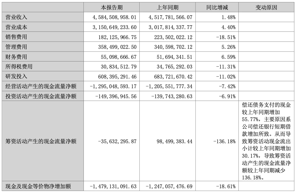 研发投入 6.08 亿,去年同期 6.84 亿。