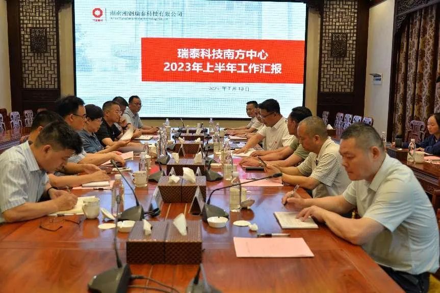 南方中心党委书记、总经理唐安山就南方中心上半年党建工作、经营情况、存在的问题以及下半年工作安排和部署作了详细汇报。湘潭分公司、都江堰瑞泰、瑞泰国贸分别作了补充发言。随后,与会人员就南方中心如何在人员交流、干部培养、党建工作和经营机制等方面做实做强进行了充分研讨。