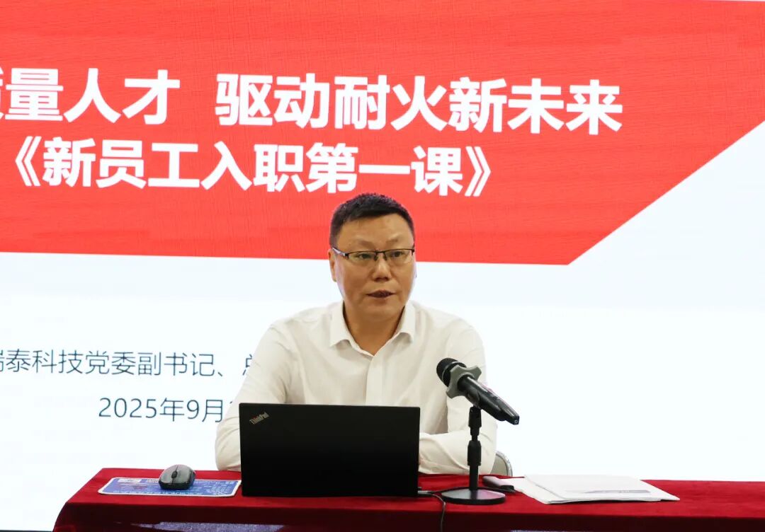 开班仪式上,王华对新员工的到来表示热烈欢迎,并以《淬炼高质量人才驱动耐火新未来》为题讲授了新员工入职第一课。课程全面回顾了公司24年的发展历程和“十四五”战略落地情况,系统阐述了公司战略文化体系、人力资源基本情况和人才发展体系,展望了公司下一发展阶段在科技创新、国际化、数字化等方面的蓝图,并围绕新员工的职业发展,提出了殷切期望与明确要求。他寄语新员工要深刻理解并践行“耐火精神”,要“耐”得住寂寞,沉心学习、厚植专业;要“耐”得住高温,坚韧不拔、直面挑战;要“耐”得住考验,迎难而上、优化自我;更要“磨”得出锋芒,千锤百炼、终成精英。他勉励大家将这一精神融入职业生涯,扎根一线,持续学习,勇于创新,融入团队,坚守底线,在沉淀中成长、在坚守中突破、在磨砺中闪耀,成为公司与行业的栋梁之才。