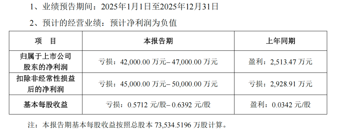 不过,在水性炭黑新业务取得产业化突破的同时,黑猫股份的传统炭黑主业,正面临着不小的经营挑战。根据其2026年1月30日晚披露的2025年度业绩预告,预计2025年归属于上市公司股东的净利润将亏损4.2亿元至4.7亿元,而上年同期为盈利2513.47万元。扣除非经常性损益后的净利润预计亏损4.5亿元至5亿元,相比上年同期亏损2928.91万元,亏损幅度显著扩大。