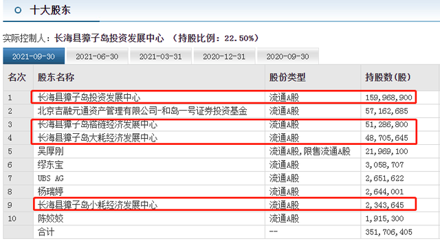从獐子岛的股东结构来看,长海县獐子岛政府通过四家公司共计持有獐子岛2.62亿股股份,占总股本的比例为36.8%,去掉1.1亿股后还占有21.3%的股份,镇政府依然能够控制这家上市公司。