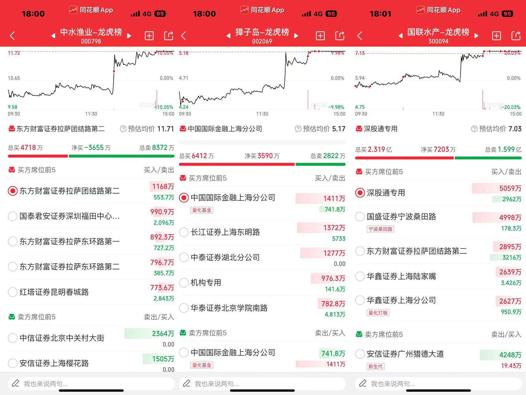 另外,中水渔业被净卖出3655万。中水渔业的买方席位中,有“散户大本营”之称的东方财富拉萨营业部占据3席;卖出席位中,则出现知名游资北京中关村的身影,为卖出榜第一名。