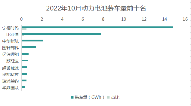 根据中国汽车动力电池产业创新联盟最新发布的数据,今年10月,宁德时代独占鳌头、比亚迪位居第二,两者共占据超70%的市场份额,国轩高科位居第四,远远落后于宁德时代和比亚迪,也没有拉开与其他二线厂商的差距。