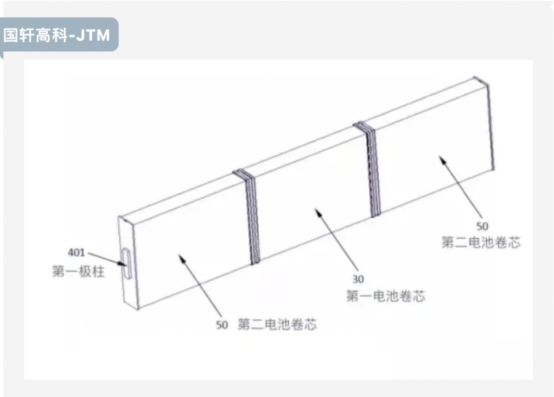 在2020年全球新能源汽车供应链创新大会上,国轩推出JTM新技术。据国轩介绍,J为卷芯,M为模组,JTM是直接把卷芯放在模组里面,一次完成制作。