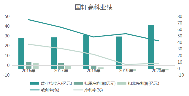 国轩高科则持续走下坡路,2016—2020年间,市场份额占比跌到第三。这五年间,尽管国轩高科营收保持增长,但净利润快速下滑,从2016年的10.31亿元降至1.49亿元,扣非净利润连续两年亏损。毛利率由46.93%大幅降至25.23%,接近腰斩。