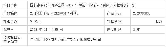 本次债权融资计划已于2022年11月25日发行结束,资金到账日为2022年11月25日,本次债权融资计划的发行价格为同期限最低,且为安徽省内首单绿色(科创)双标债融。发行结果如下: