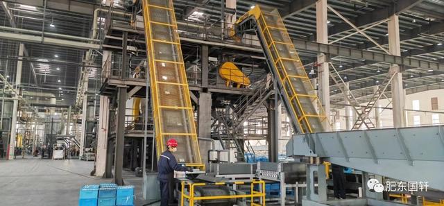 目前肥东国轩电池回收项目车间拥有锂电池全自动拆解线,废旧电池全封闭式无氧带电破碎、物料分选及电解液回收等全套设备;产线应用远程控制、数据收集、机器识别等先进技术,促进废旧电池回收处理向科学化、环保化、自动化、安全化、集约化方向发展。