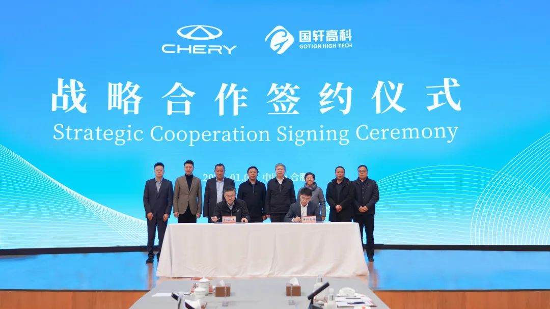 1月8日下午,国轩高科全资子公司合肥国轩高科动力能源有限公司(以下简称合肥国轩)与奇瑞汽车股份有限公司(以下简称奇瑞汽车)签署战略合作协议。双方拟在乘用车及商用车领域展开全方位合作,共同开拓新能源汽车市场。奇瑞控股集团董事长尹同跃、国轩高科董事长李缜现场见证本次签约。