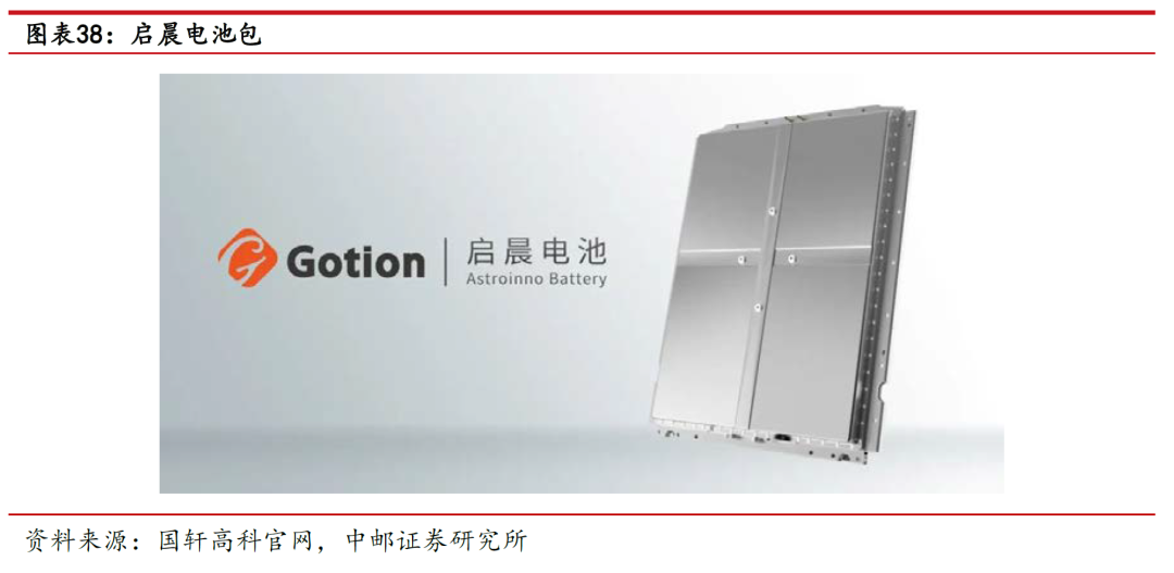 磷酸锰铁锂电池:能力密度240Wh/kg,可实现18分钟快充。公司于2023年发布启晨L600 LMFP电芯,可实现240Wh/kg的质量能量密度,525Wh/L的体积能量密度,常温循环4000圈,高温循环1800圈,支持18分钟快充。除了电池材料体系的全新升级和创新外,基于该款电芯打造的启晨电池包,也有多项技术的突破与创新。启晨电池包采用了三明治结构的双面液冷技术和极简设计思路。极简结构设计使得电池包的结构件数量降低45%,重量降低32%;极简的电气设计使得电池包的线束长度甚至只有之前的26%,从原来的303米的线束降到了80米,体积成组效率却达到了76%,pack能量密度达到了190Wh/kg。