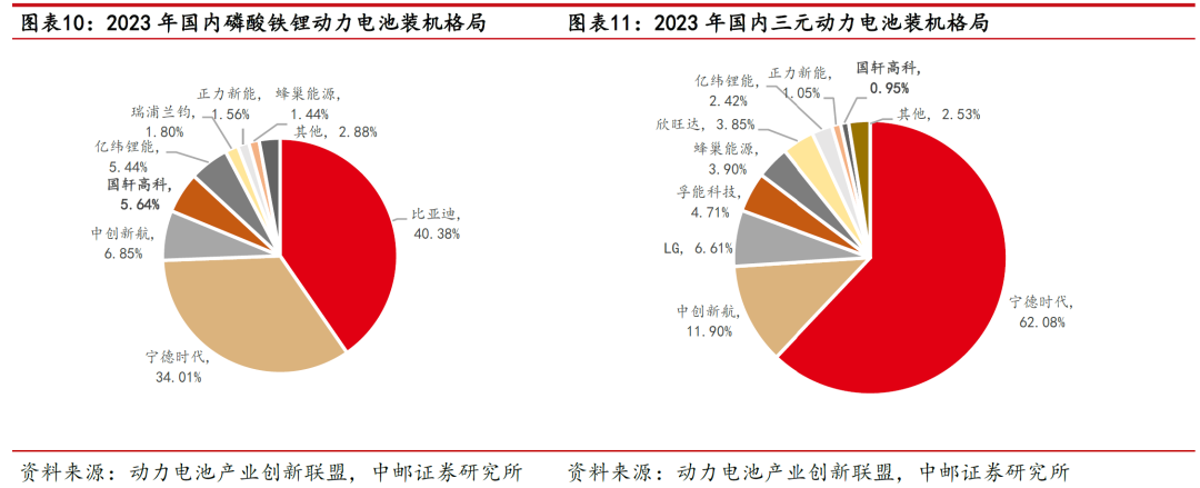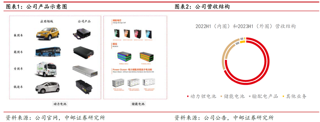 公司是国内磷酸铁锂动力电池装机第四名。公司以磷酸铁锂电池起家,深耕该领域十余年,积累了深厚的技术研发和产品经验。2023年,公司排名国内磷酸铁锂动力电池装机第四名,市场份额5.64%。三元动力电池方面,公司目前体量不大,2023年排名国内三元动力电池装机第九名,市场份额0.95%。
