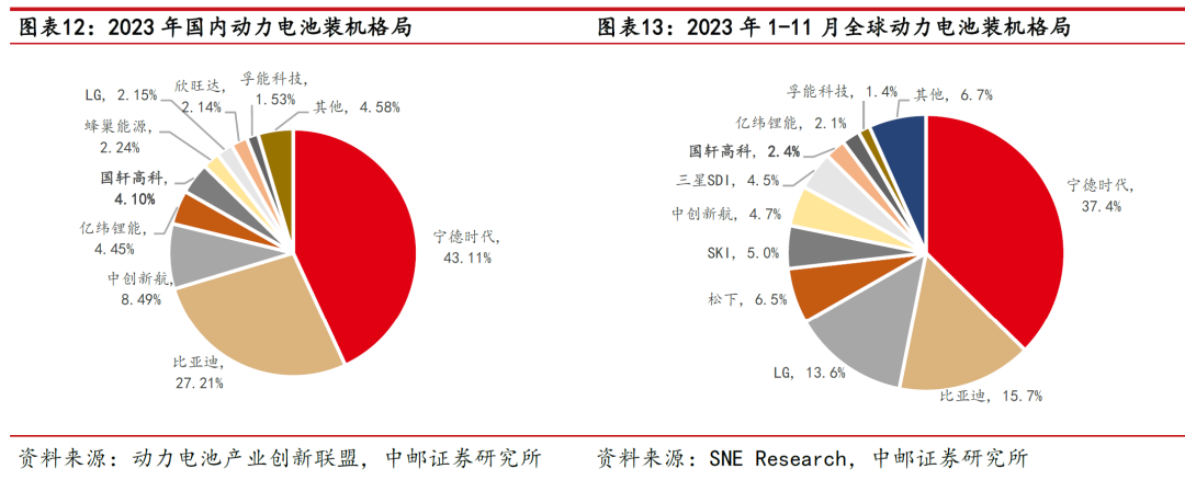 全球市场,公司动力电池装机排名第八。2023年1-11月,从全球动力电池的装机格局来看,公司位列第八名,市场份额2.4%,和国内厂商相比,仅次于宁德时代、比亚迪和中创新航。