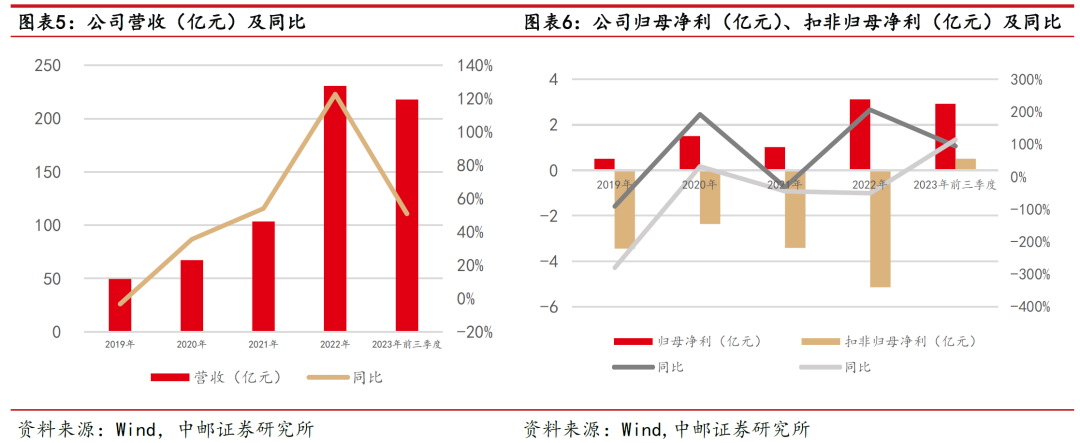 2023年业绩预告亮眼。从最新披露的2023年业绩预告来看,公司2023年利润表现亮眼。2023年,公司预计实现归母净利8-11亿元,同比增长157-253%;预计实现扣非归母净利0.85-1.20亿元,同比扭亏为盈,有望是公司自2019年以来的首年度扣非净利转正。