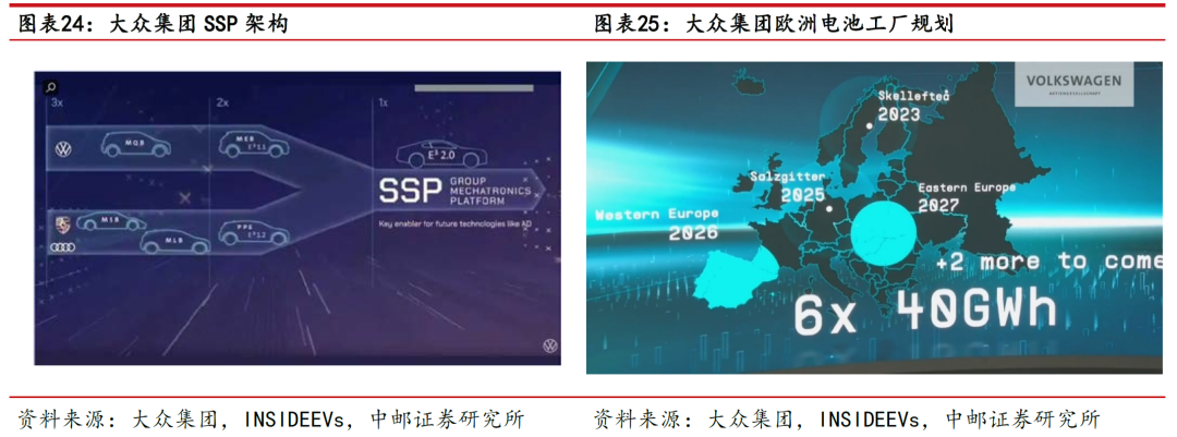 合作重点(2):在欧洲和大众就建厂、开发标准电芯达成合作。2021年,双方签署合作备忘录,进一步达成了在欧洲合作建厂、合作开发标准电芯的事项。(关于大众的欧洲工厂规划、标准电芯理念详见下文)。