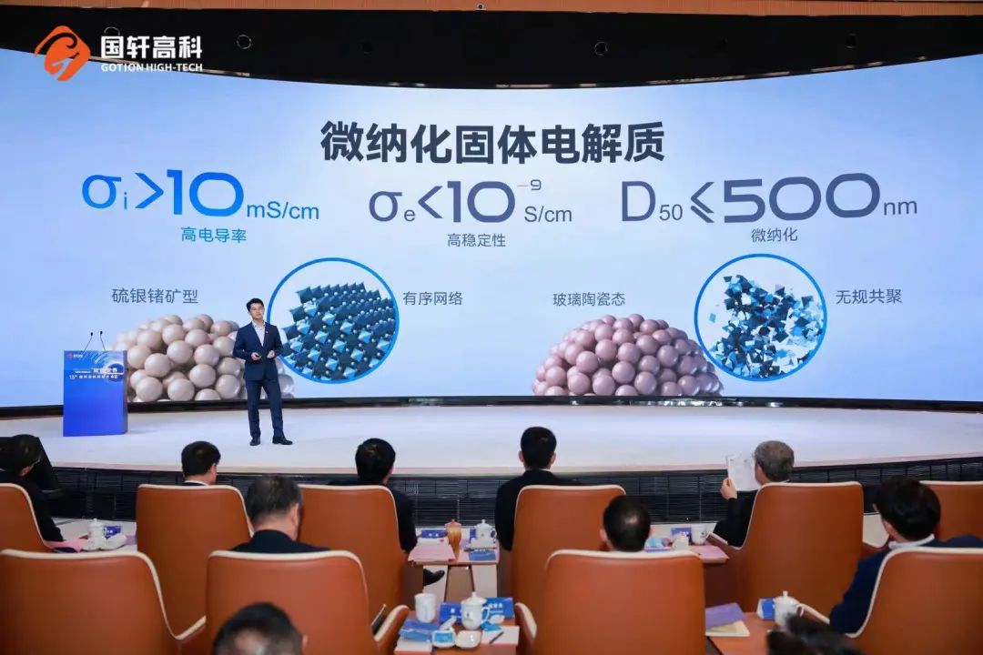 国轩全固态电池选择的是硫化物电解质路线。基于对硫银锗矿型材料的微纳化处理(D50不超过500nm),其电解质可实现超过10mS/cm的高电导率。