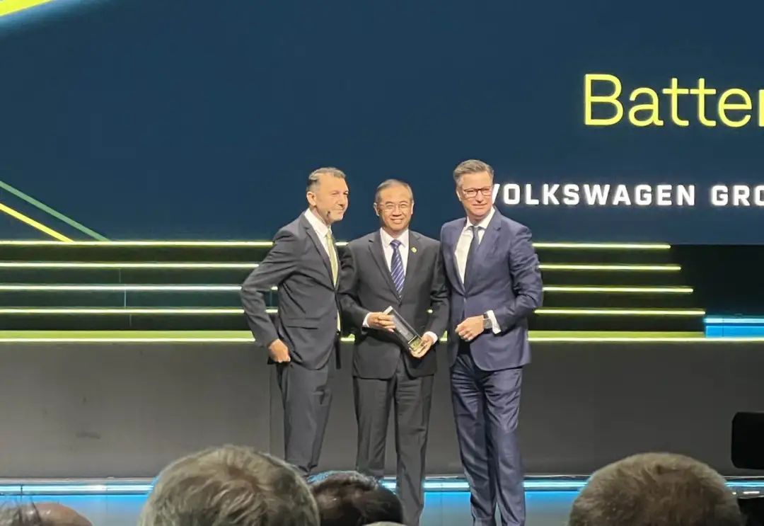 7月2日,大众汽车集团供应商大会在大众总部德国狼堡举行。国轩高科荣获电池品类最佳供应商奖,欧非业务总裁蔡毅代表公司出席并领奖。这是大众汽车集团为供应商颁发的最高荣誉奖项。