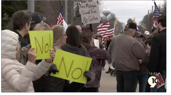 2023年4月,绿镇附近的大急流城挤满了数百名抗议者,还有一些州代表加入了他们的行列。