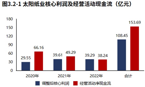经营活动无资金缺口,但现金净流入大幅缩水。太阳纸业2022年报经营活动现金净流入38.24亿元,较2022年报减少11.06亿元,2020年报到本期经营活动累计产生净流入153.69亿元。