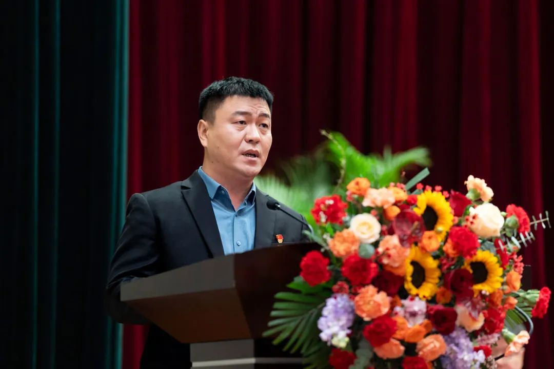 公司党委书记李洪信出席并讲话,李娜、李鲁、刘泽华、应广东等公司领导出席会议。大会采取山东、广西、老挝三地连线形式召开,公司各部门负责人、优秀团体及优秀个人代表、职工代表等1300余人参加会议。