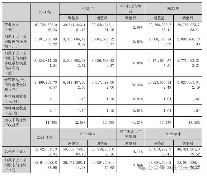 纸引未来网消息,4 月 9 日晚,国内造纸行业龙头企业太阳纸业(002078)发布 2024 年年度报告。报告显示,公司全年实现营业收入 407.27 亿元,同比增长 2.99%;归属于上市公司股东的净利润 31.01 亿元,同比增长 0.50%,其中扣非净利润达 32.35 亿元,同比增幅达 6.88%,凸显核心业务盈利能力持续提升。报告期内,公司经营活动现金流净额同比大增 28.44%至 84.99 亿元,资金链韧性显著增强。