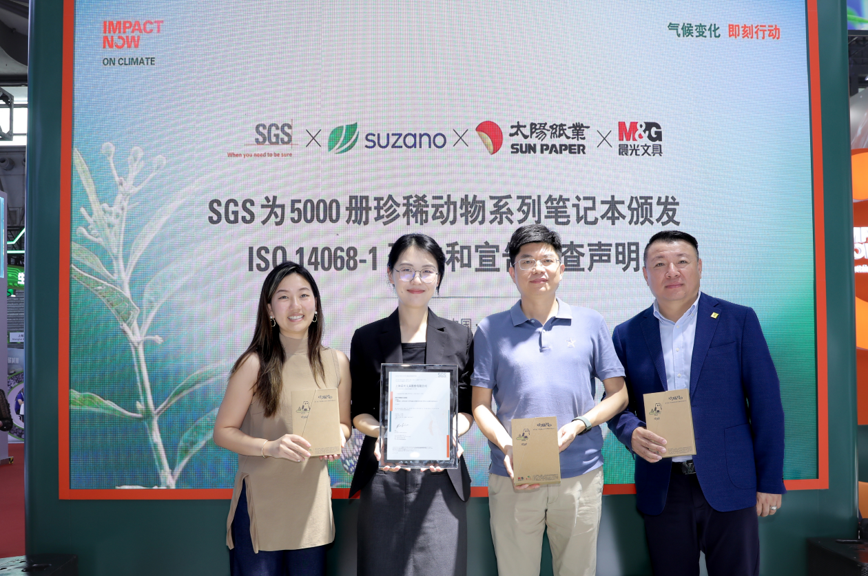 2025年6月5日,在2025六五环境日成都主场活动上,采用太阳纸业100g“金太阳”胶版印刷纸印制的世界环境珍稀动物系列碳中和笔记本正式亮相!