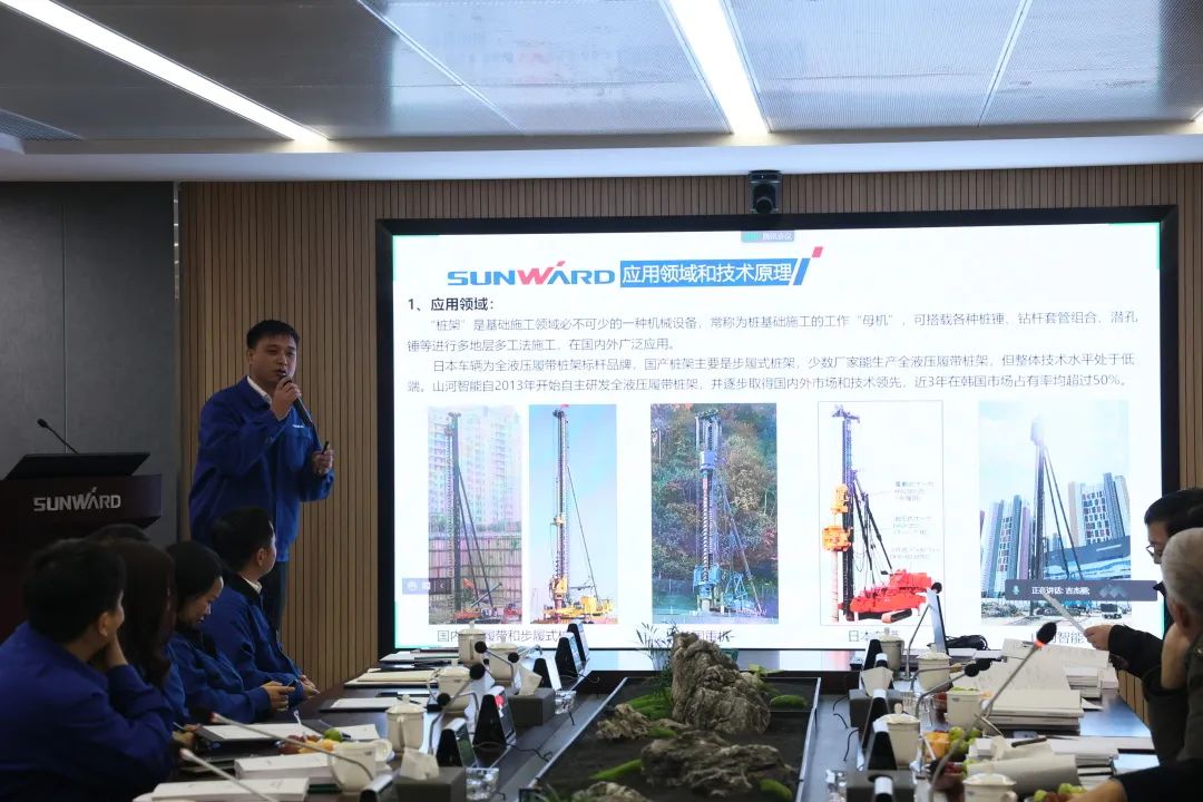 随后,四项科技成果研发人员对科技成果依次进行了详细汇报,重点介绍了研发成果的创新点、科技成果转化应用情况及成果所带来的社会和经济效益。鉴定委员会专家们认真听取了成果汇报,仔细审查了鉴定材料,查看了样机实物,并严谨质询了成果内容。鉴定委员会对项目成果给予了充分肯定,并对山河智能今后持续科技创新提出了宝贵的指导意见。