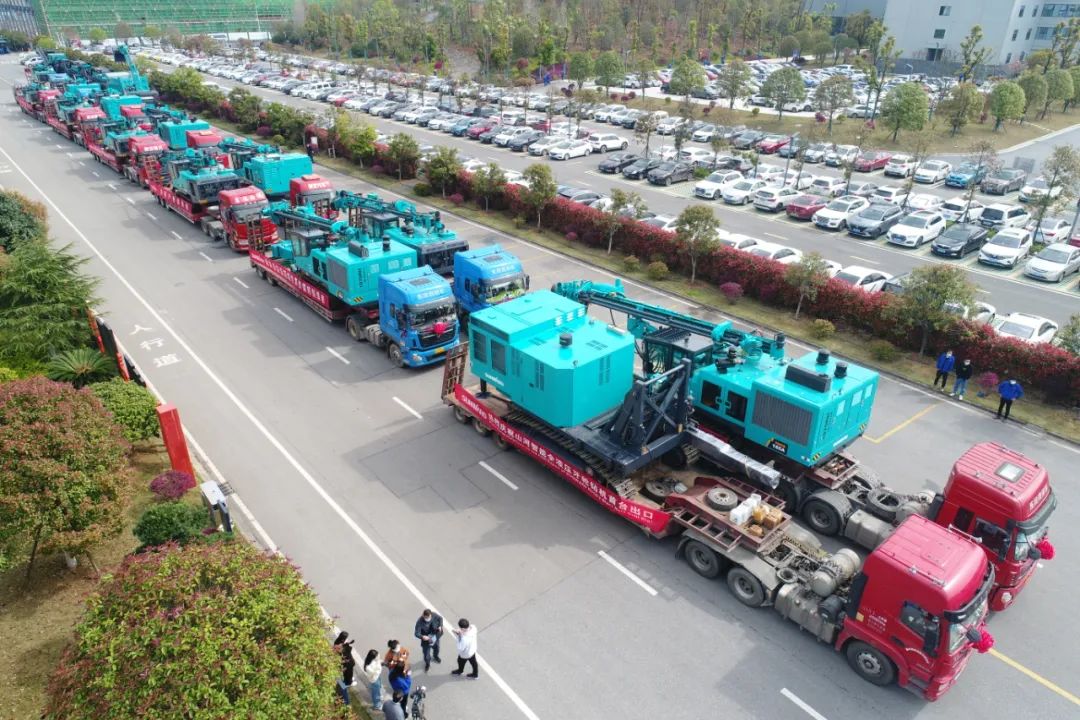 “目前,山河智能拥有气动、液压、潜孔钻、顶锤式各类露天凿岩设备,产品的型类和门类都是世界上最齐全的。今天发货的凿岩设备,特别是拥有高度机电液一体化系统集成的牙轮钻机,预示着山河智能的另一款高端凿岩设备正式进入大市场。”何清华在致辞中表示,总书记视察山河智能后,山河智能取得了更加健康快速的高质量增长,特别是先导式创新取得了一系列成果,凿岩设备又是山河智能自主创新程度最强的产品,很多关键技术需要去突破。
