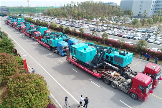 3月29日,由山河智能装备股份有限公司自主研发、生产的一批全液压牙轮钻机首次出口,装车发往欧洲国家。