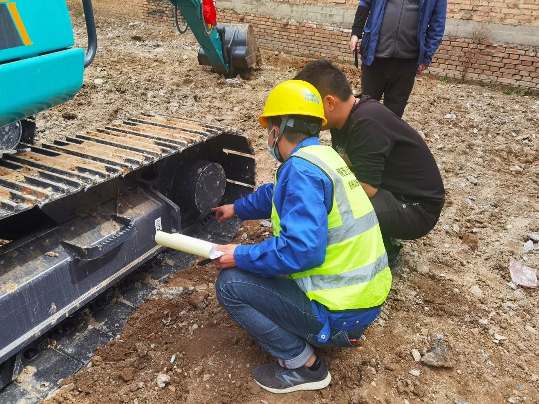 在陕西,山河智能SWE80E9挖掘机交付现场,山河智能经销商陕西山河天越的服务工程师正仔细地为本次喜提新机的客户陈总讲解新机日常使用及维护常识。