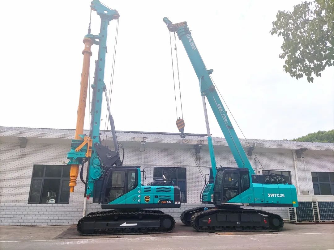 作为超级打桩设备,山河智能SWDM130旋挖钻机可用于丘陵、稻田、平原等各类环境下的电塔桩基础打孔作业。“它的动力头采用了双马达减速配置,拥有大扭矩及高转速,作业效率高,同时采用覆带式底盘,爬坡能力大于40%,具有打孔、吊装钢筋笼的作业能力。”相关技术人员表示,这款设备还能够带钻杆、动力头运输,转场灵活,更加方便作业。