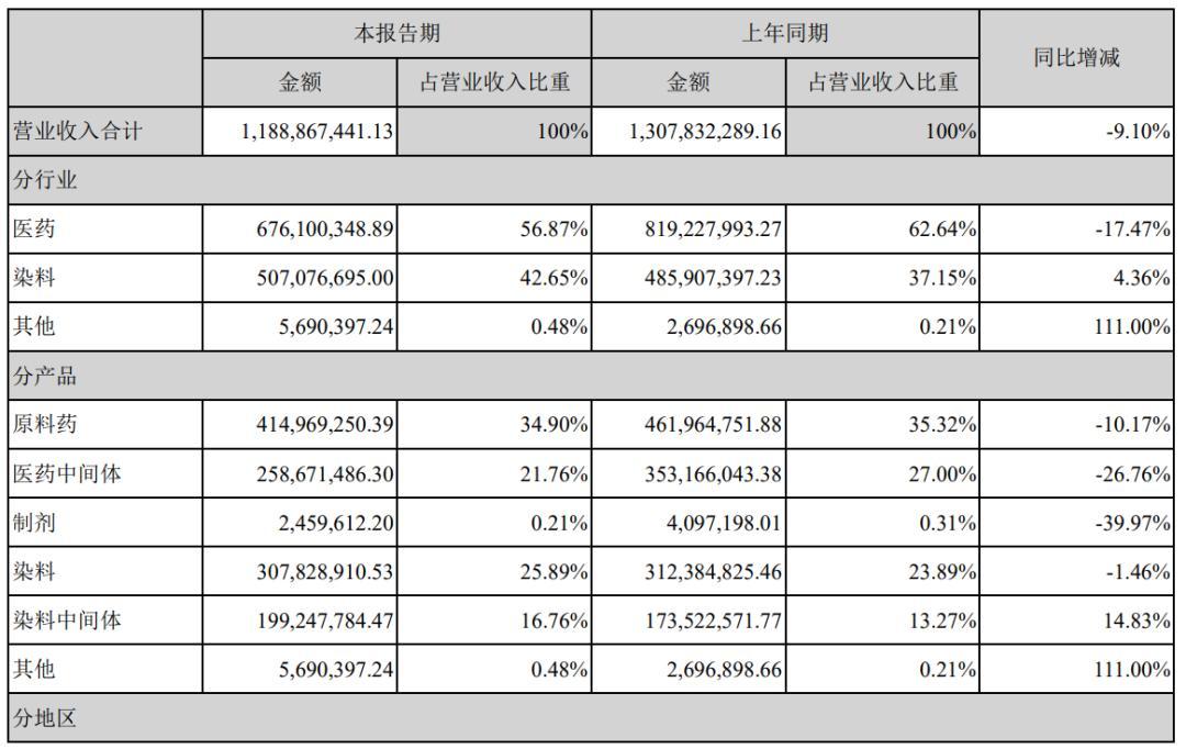 今年上半年,海翔药业实现营业收入11.89亿元,同比减少9.10%。