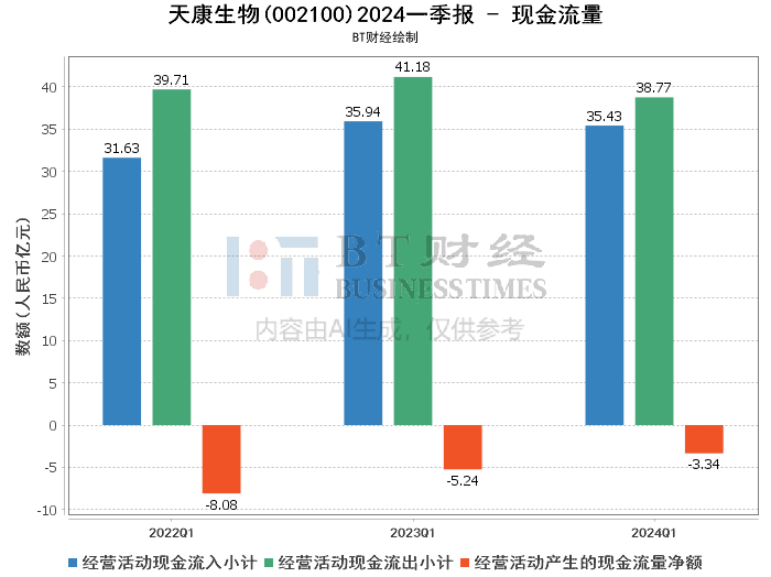 在现金流量方面,天康生物一季度经营活动产生的现金流量净额虽然仍为负数,但相较上年同期的-5.24亿元已大幅收窄至-3.34亿元,改善了36.26%。主要是报告期内因大宗原料价格回落、购买商品支付的现金减少所致。然而,投资活动产生的现金流量净额出现下滑,主要系上年同期收回大量理财产品而本期无此项目所致,这提示公司未来在投资决策时需更加审慎。