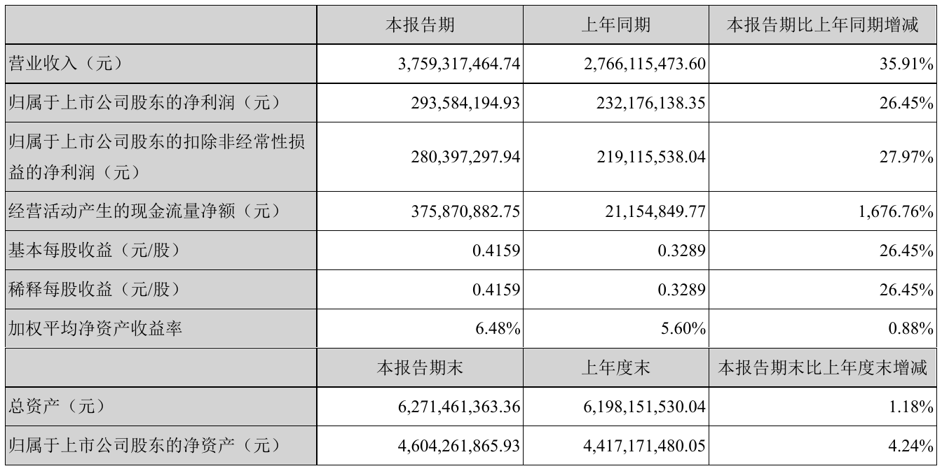 8月27日,莱宝高科(002106)近日发布2021年半年度报告,报告期内营业收入3,759,317,464.74元,同比增加35.91%;净利293,584,194.93元,同比净利增加26.45%。
