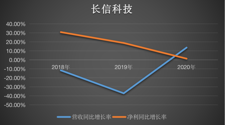 长信科技的营收增长曲线与莱宝高科大致相同,都是逐步下滑直到2020年有了增长,但净利润增长曲线仍然在下滑。
