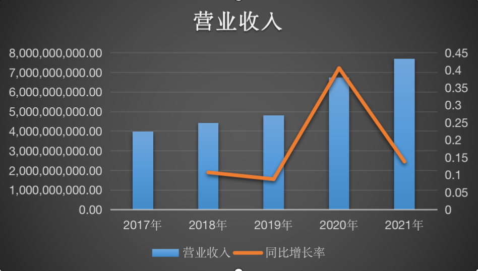 2017-2021年,莱宝高科的营收收入分别为39.89亿元、44.16亿元、48.02亿元、67.52亿元、76.82亿元,2018-2021年分别同比增长10.7%、8.74%、40.59%、13.79%。