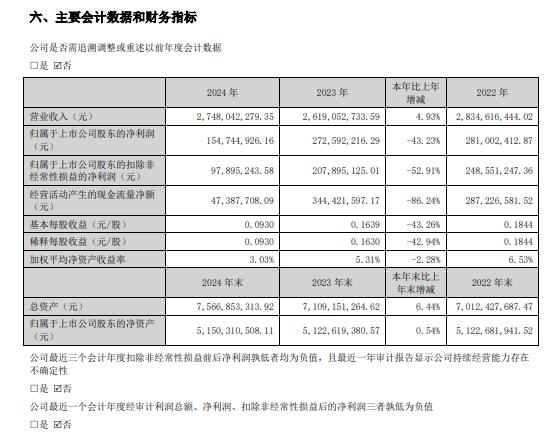 业绩“变脸”:净利润连降三年,2024年骤降43%