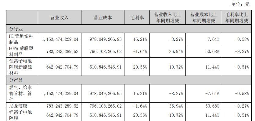 主营业务全面承压:BOPA薄膜陷亏损,隔膜产能过剩