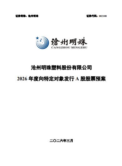 在刚刚完成易主约三个月后,沧州明珠(002108.SZ)便火速推出再融资计划。3月3日晚间,公司披露2026年度向特定对象发行A股股票预案,拟向控股股东广州轻工工贸集团有限公司(下称“广州轻工”)发行不超过3.51亿股,募资不超过14亿元,全部用于补充流动资金。