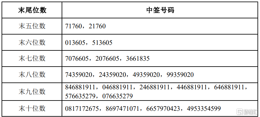凡参与广泰转债网上申购的投资者持有的申购配号尾数与上述号码相同的,则为中签号码。中签号码共有19.6092万个,每个中签号码只能认购1手(10张,1000元)广泰转债。