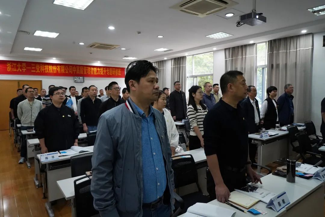 为进一步落实三变科技人才强企战略、凝聚改革发展共识、打造高素质干部队伍,不断提升科学决策能力和创新攻坚能力,2023年5月12日~14日,公司联合浙江大学举办了中高层管理者能力提升专题研修班。公司领导班子成员、各部门、车间负责人以及各职能部门人员共50余人参加了此次研修。