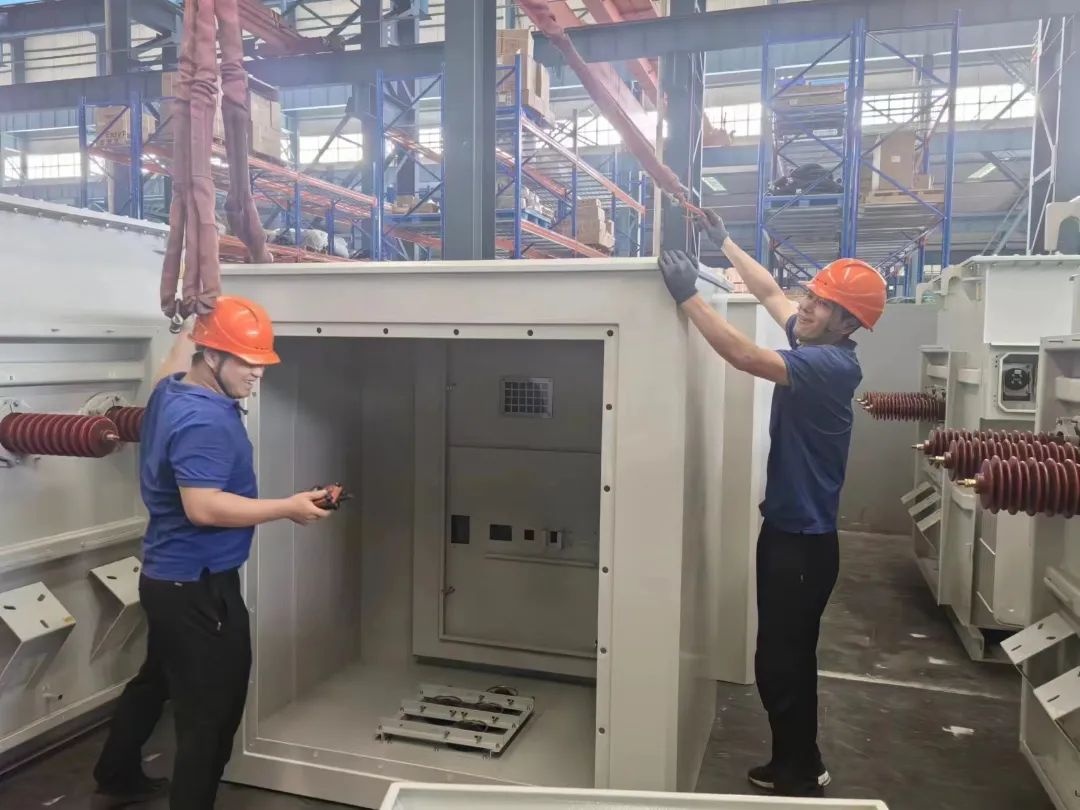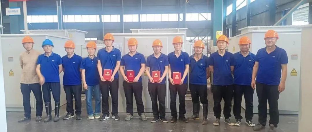 1:20,比赛正式开始,大家有序地在底座旁排好,等待主体的吊装。随着行车把一台台主体落下,装配工们也忙碌了起来,一颗颗螺丝钉精准地落下,螺母也随着他们的手指飞舞起来,门板、顶盖,一块块看似普通的钢板,在他们的拼装下,立马就变成了一台台精美的变压器。大家你追我赶,不分上下。经过2个小时的激烈角逐,在工艺和质检的层层检验下,最终吴善宠以他丰富的经验和高超的技术水平获得了第一名,俞一龙获得了第二名,奚熙华和项强获得了第三名。工会副主席赖在旺为获奖的员工颁发了奖金和证书,并激励他们在今后的工作中要更加努力,戒骄戒躁,再接再厉,为公司发展作出更大的贡献。