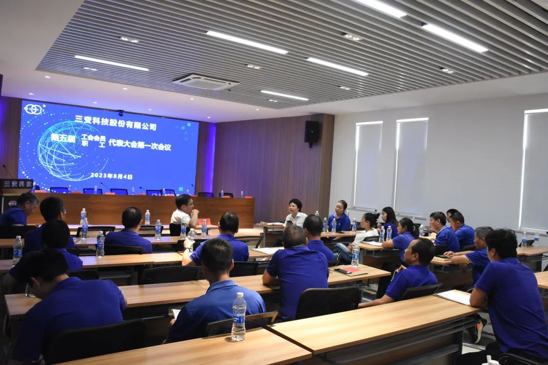 2023年8月4日,三变科技股份有限公司第五届工会会员、职工代表大会第一次会议在一楼党建服务中心会议室顺利举行。出席会议的正式代表应到60人,实到57人,符合会议要求。