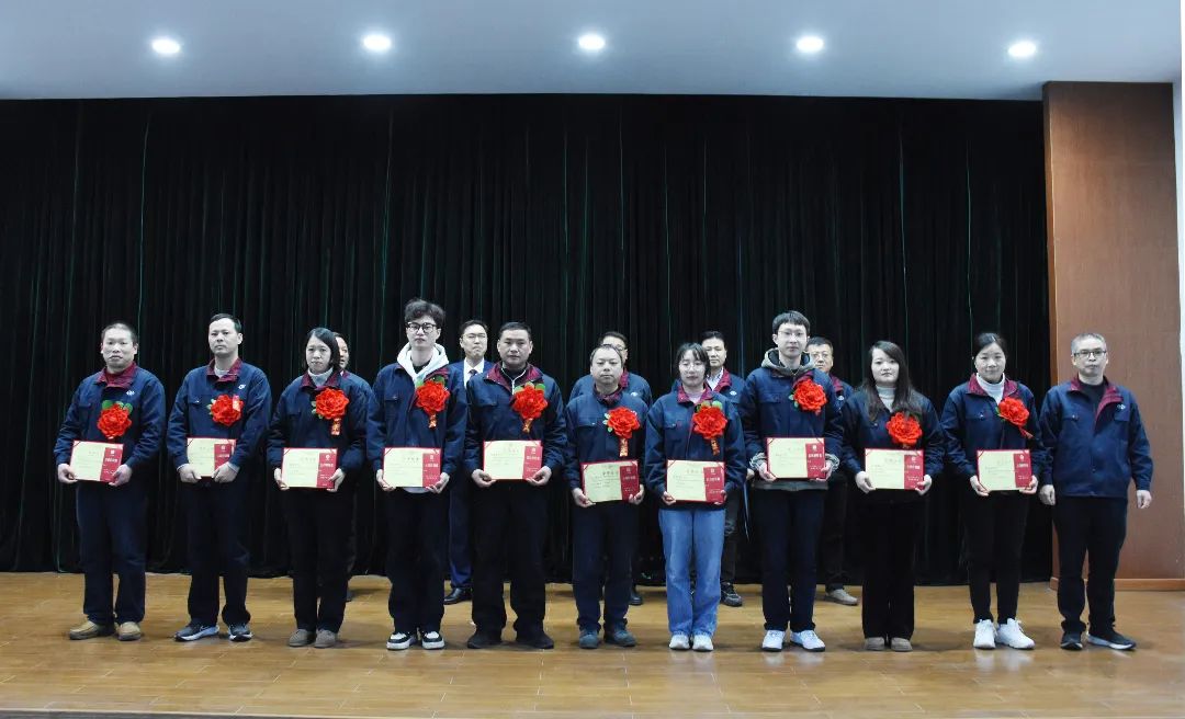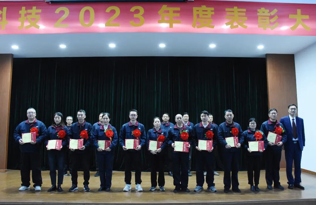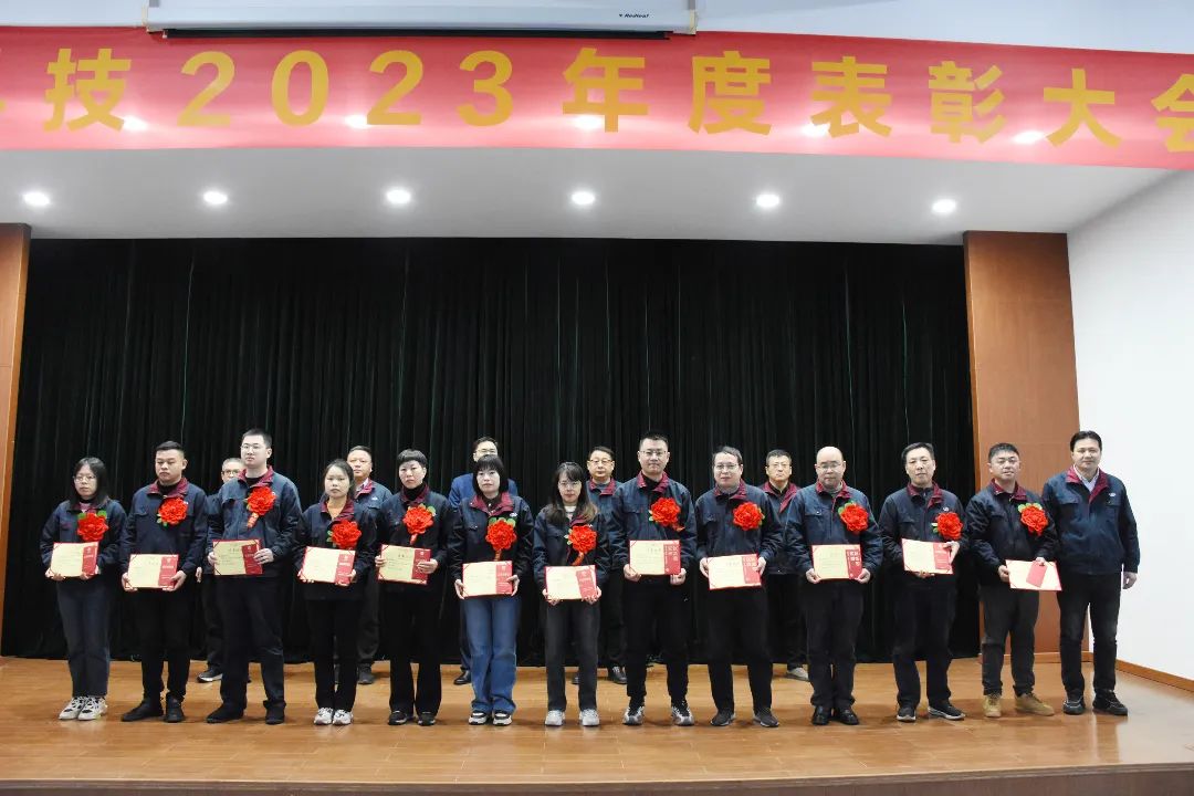 2024年2月7日,公司在五楼会议室举行了2023年度表彰大会,并对2023年度涌现出的优秀团队、优秀党员、优秀员工、忠诚奖、单项先进员工和集体奖项进行了表彰,公司领导谢伟世、俞尚群、戴军、陈敏、陈益、章日江、刘曰来在台上为获奖人员颁奖。